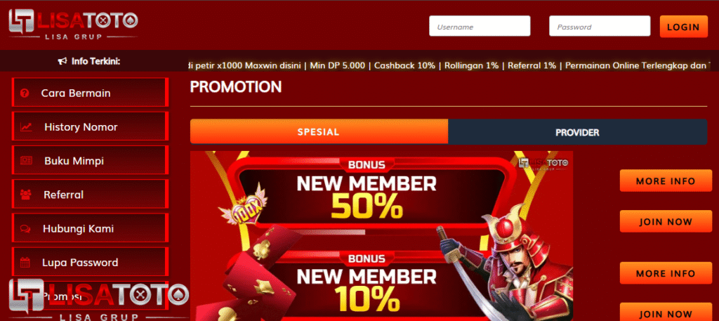 🚫 Tidak terhubung dengan promo resmi LISATOTO